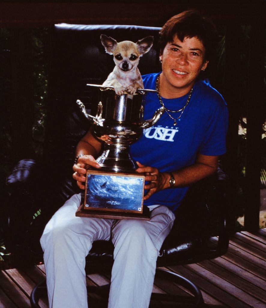 “There’s a positive in every negative,” Menczer told the room. “We didn’t have much growing up, but I found surfing and that was free. I had arthritis, but that made me appreciate every moment. I didn’t get financial sponsors because I didn’t have the right beach-babe look or the blue eyes, but I could speak my mind and call out the outrageous inequities in women’s surfing and make noise without getting in trouble by sponsors.”