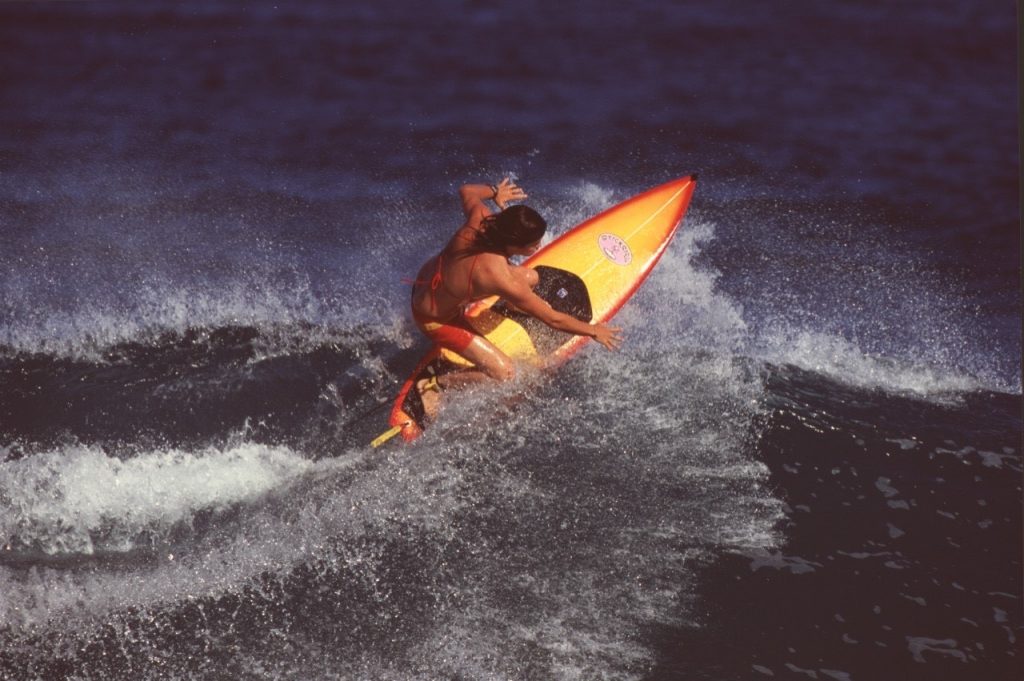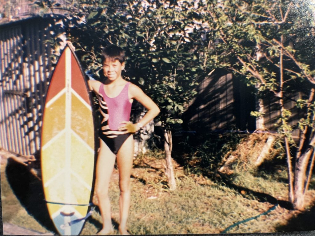 “I was a scrappy little grom growing up in Ocean Street with my mum, Grace, and three brothers,” she said. “My dad was killed when I was five years old, and so the ocean just became our playing field. It was our dining room, everything, and it was all free.”